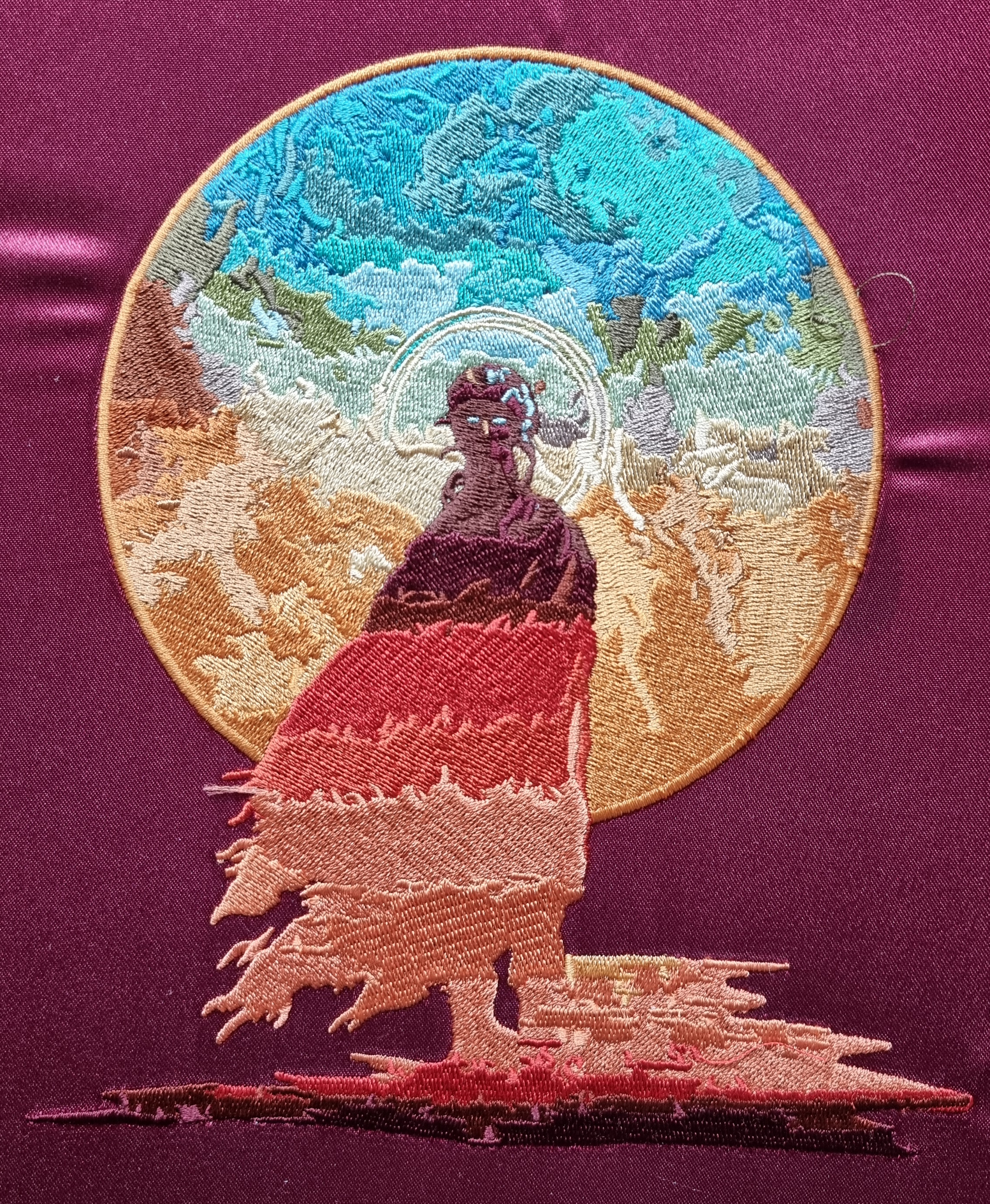 Les éléments brodés sont également réalisés dans mon atelier, avec une attention particulière portée aux détails, à la lisibilité et à la tenue dans le temps.