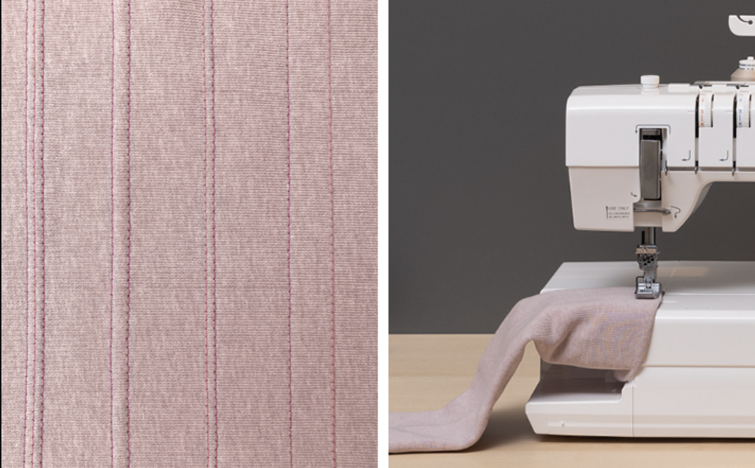 | Double point de recouvrement large (6 mm) | 2 aiguilles / 3 fils |