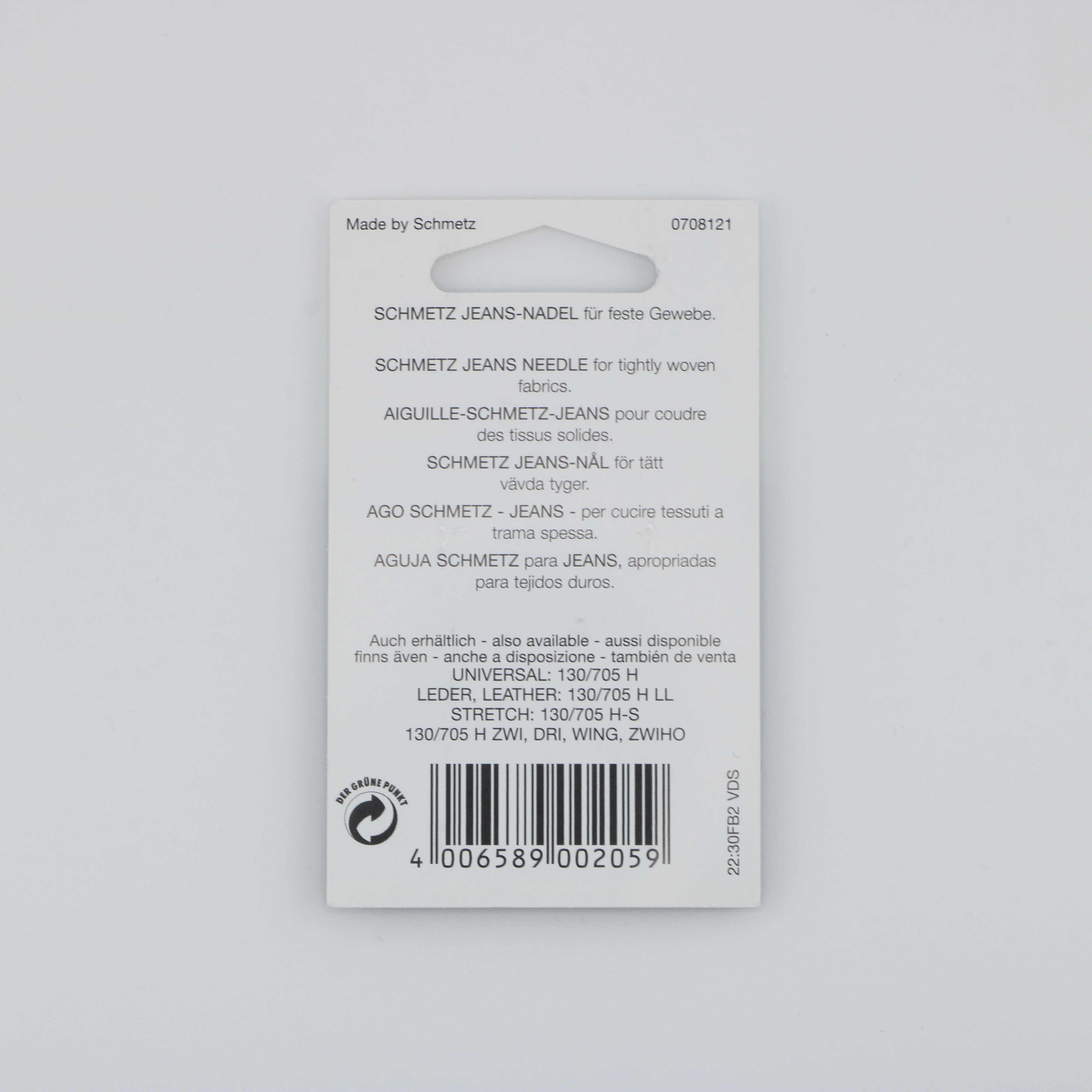 Aiguille spéciale Jeans NM 90 avec revêtement titane doré, système 130/705 H-JT. Elle offre une longévité renforcée pour les coutures répétées sur denim, toile et tissus denses. Un vrai atout pour les couturières qui veulent du solide… et du durable.