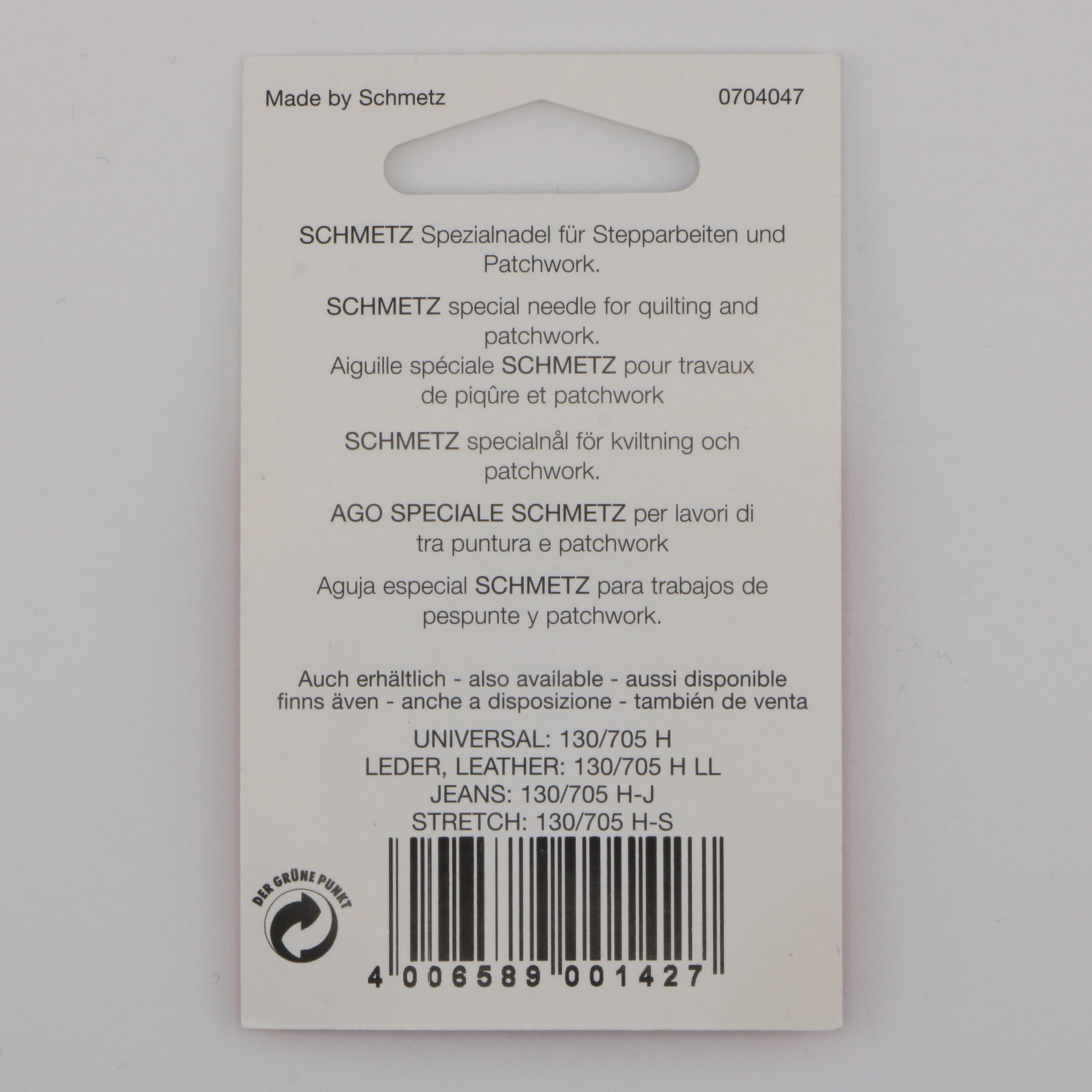 | Type d'aiguille utilisée | 130/705 H nm 65 à 110 |