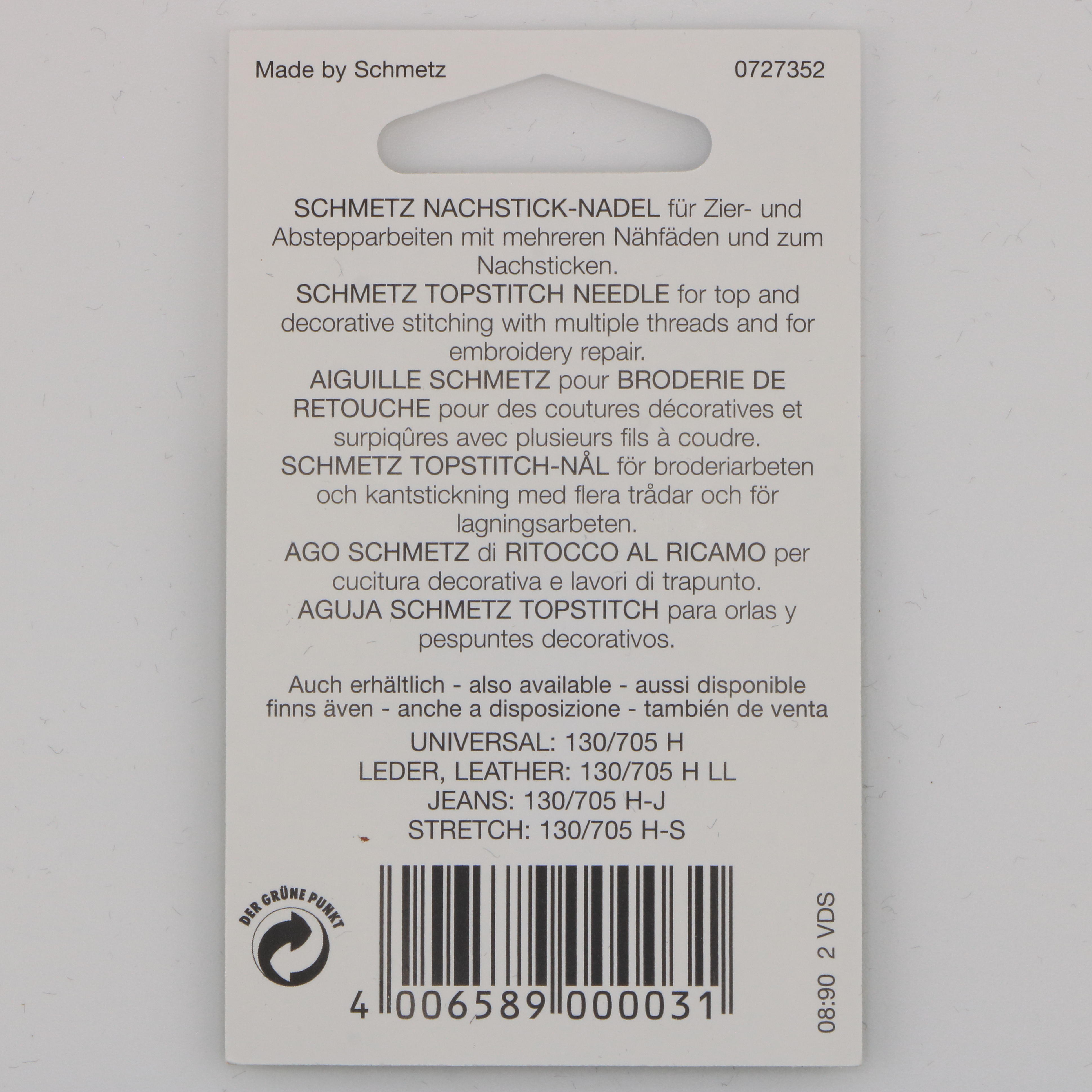 Aiguille NM 100 système 130/705 H-N, conçue pour les surpiqûres décoratives sur tissus épais. Son chas allongé permet l’utilisation de fils volumineux ou métalliques sans frottement ni casse. Parfaite pour donner du relief aux coutures apparentes.