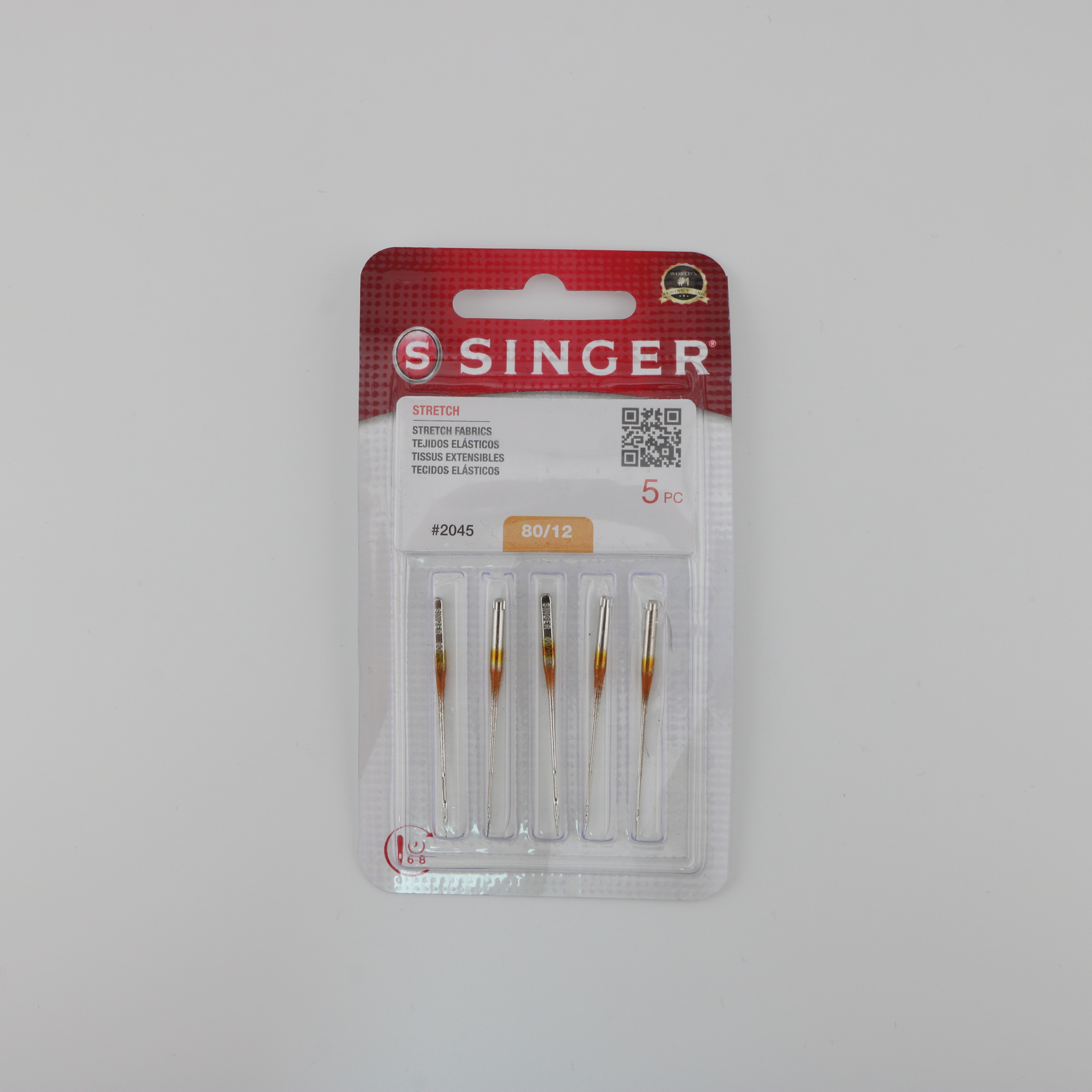Assortiment de 5 aiguilles Singer 2045 pour tissus extensibles : 3 en NM 70 et 2 en NM 80. Pointe boule moyenne idéale pour le jersey, le lycra ou le sweat. Compatibles avec toutes les machines à coudre familiales. Une base sûre pour coudre la maille sans prise de tête.