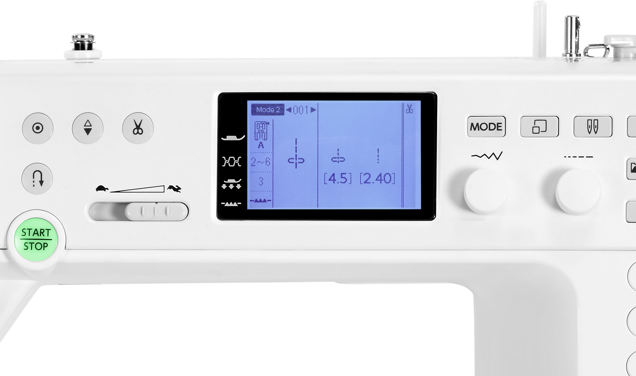 L'écran de la Elna eXcellence 720 PRO est véritablement un régal : il affiche les informations essentielles de manière claire et facilite la sélection des fonctions grâce à une interface extrêmement intuitive, typique des standards japonais.
