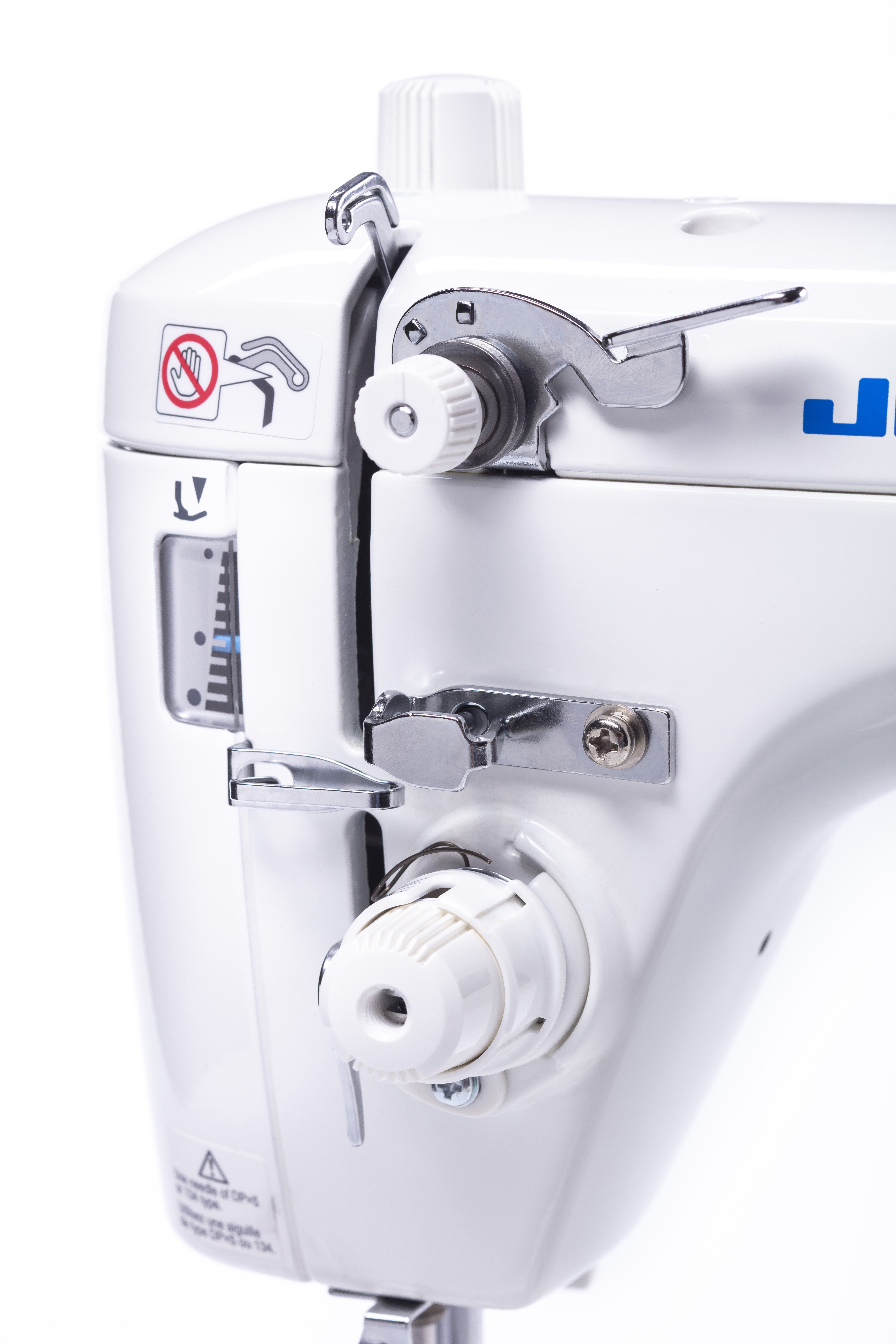 Beaucoup plus rustique et brute que sa petite sœur, la Juki TL-2200QVP Mini CE, la Juki TL-2300 Sumato ne cherche pas à séduire par les gadgets : elle joue dans la cour des machines qui en ont sous le capot.