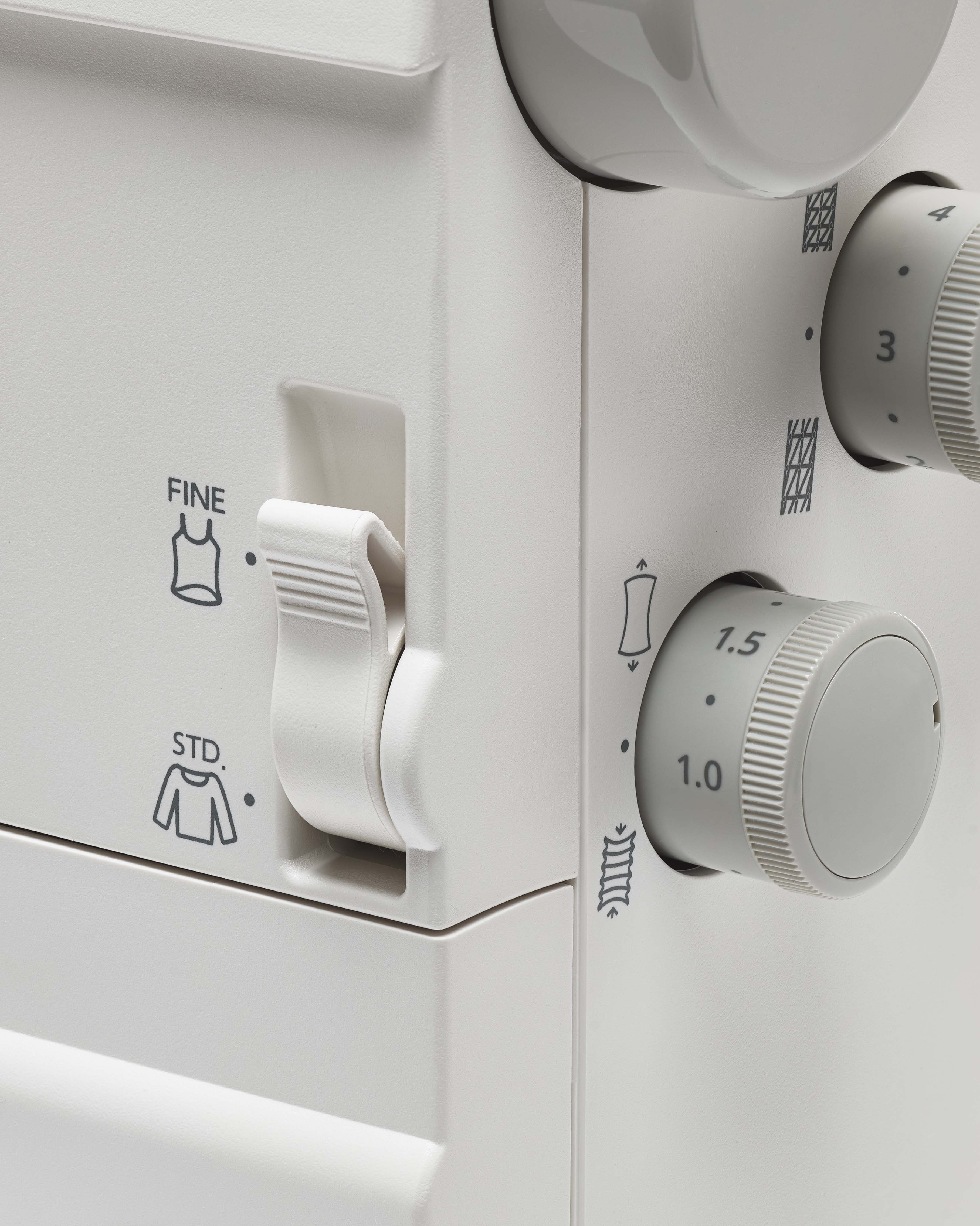| Accessoires standard | Coffret de rangement pour accessoires, Assortiment d'aiguilles, Tournevis (petit et large), Pinceau de nettoyage, Disques fixe-bobine larges, Filets, Pince, Enfile-aiguille, Housse de protection |