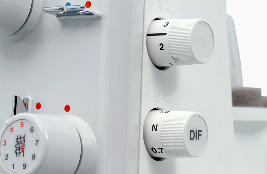 Le différentiel et la longueur de point sont directement accessibles sur la droite de l’appareil, un vrai plus par rapport à la Juki MO-644D.